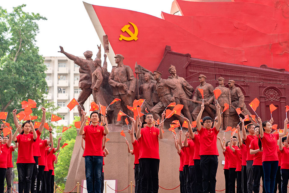 强化巡视整改和成果运用,不折不扣落实党的教育方针。图为人大学子庆祝中国共产党成立100周年。)